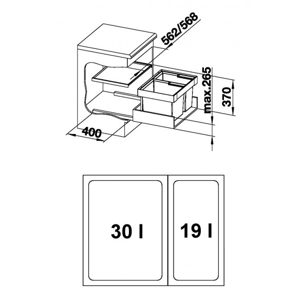 Rozložení nádob: 1 x 30 l + 1 x 19 l Košový systém do zásuvky Šířka skříňky: 60 cm Rychlá a snadná montáž Systém s přesným rámem pro nádoby a sladěnými barvami Snadná přístupn ...Více informací