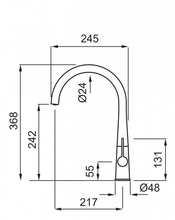 Dřezová páková baterie ELLECI ATENA G48 Otočná o 360 st. Rozměry: 368x252 mm Průměr: 35 mm Provedení: G48 (Cemento)