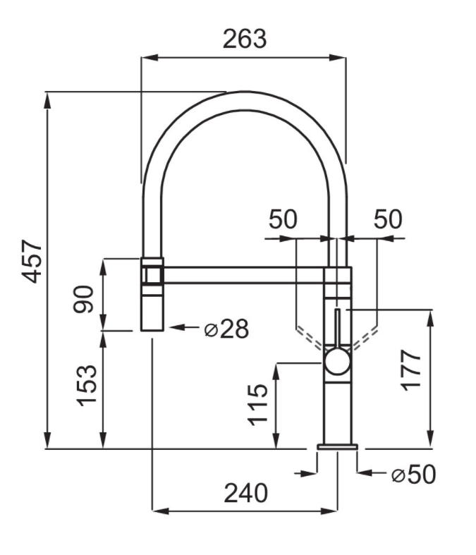 POPIS PRODUKTU Dřezová páková baterie se sprchou ELLECI WAVE BLACK MATT Otočná o 360 st. Rozměry: 457x240 mm Průměr: 35 mm Provedení: černá matná