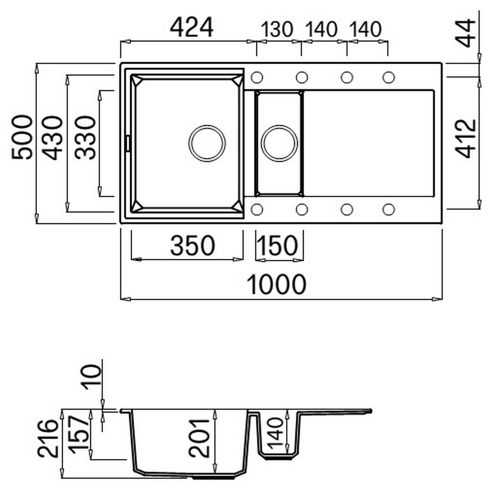 Jednodřez s vaničkou a odkapem ELLECI EASY 475 G51