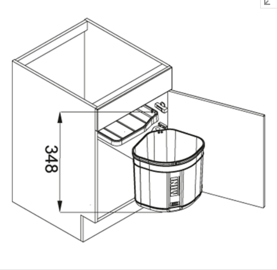 Min. montážní prostor: 310 × 310 × 348 mm Objem: 17,5 l Barva: Černá Nutný úhel otevření dvířek 110 ° Police nad košem v ceně koše