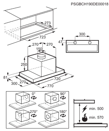 Funkce: Automatické propojení s varnou deskou, Hob2Hood, Recirkulace, S odtahem
