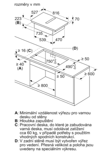 Rozměry spotřebiče (mm): 223 x 816 x 527