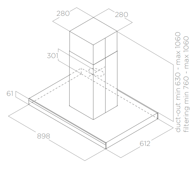 Odsavač par (digestoř) je opatřen osvětlením STRIP LED s výkonem 2x7W a teplotou 3000K.