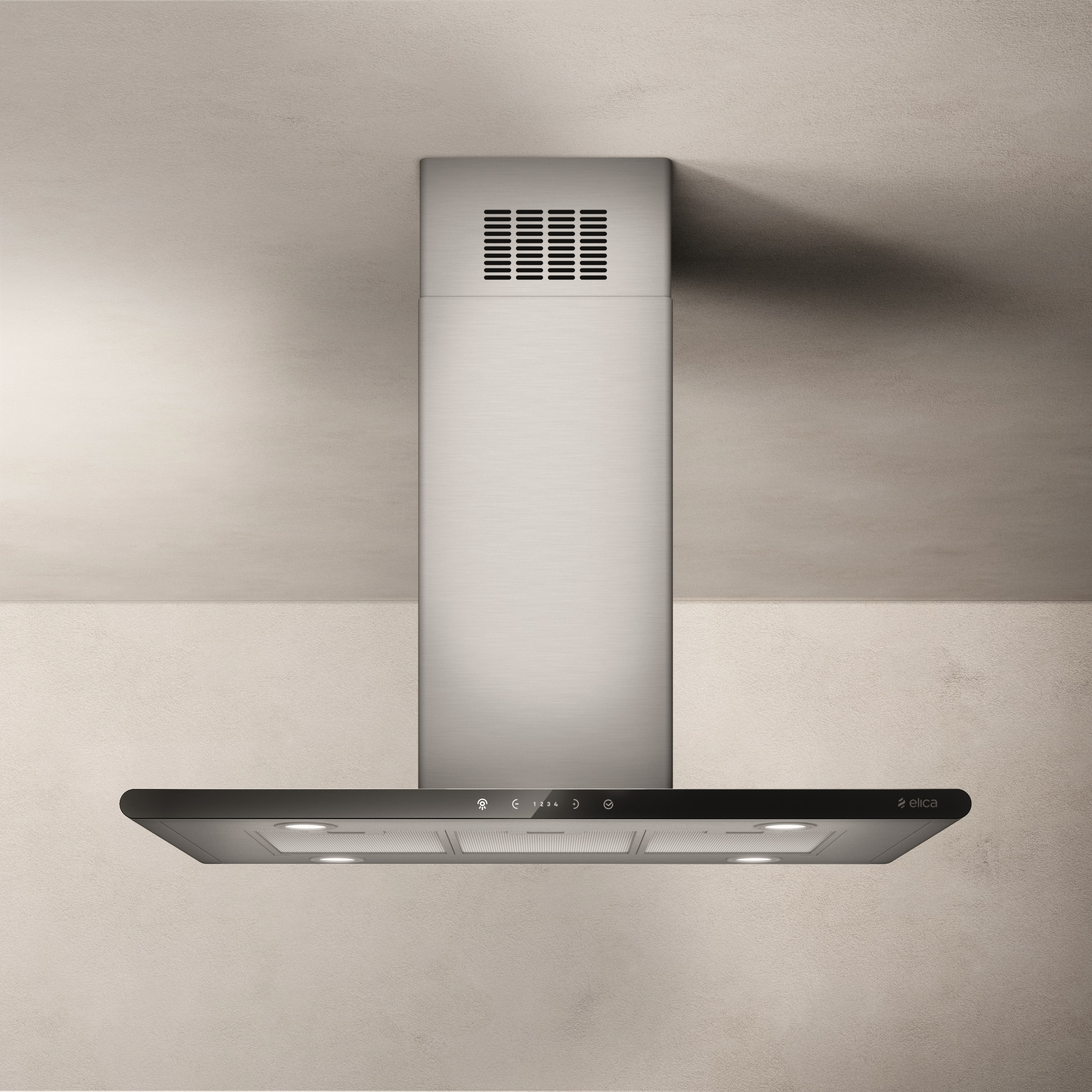 ELICA GALAXY je ostrůvkový odsavač par (digestoř) z nerezové oceli doplněný o černé sklo. Odsavač par s výkonem 288-559 m3/h a v intenzivním výkonu dokonce 647 m3/h, mile překvapí hlučností pouze 52-73 db(A) a dotykovým ovládáním.