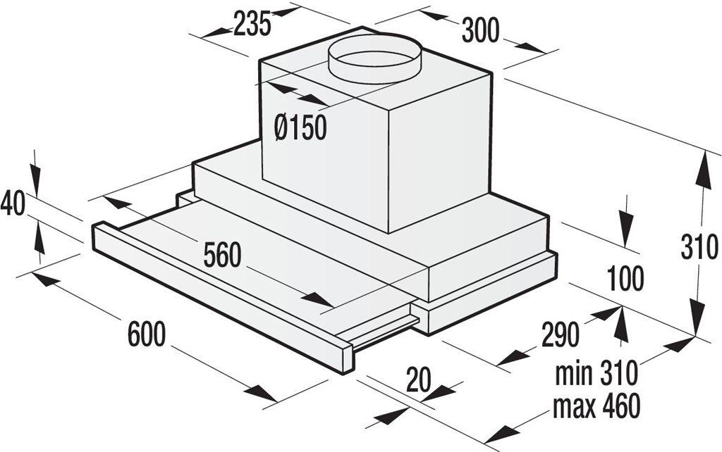 Pouze vysuňte při vaření a poté zase zasuňte pod horní skříňku. Ucelený design a linie horních skřínek zůstanou zachovány.