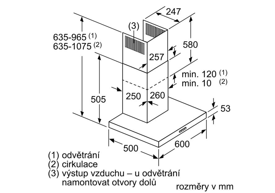 Min. výška spotřebiče při recirkulaci