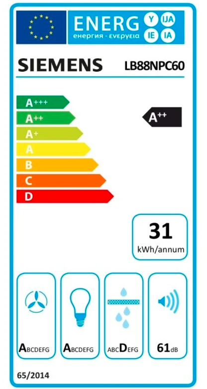 třída spotřeby energie: A++* (na stupnici třídy energetické účinnosti od A+++ do D)
