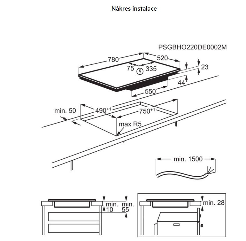 Prostor pro instalaci VxŠxH (mm): 44x750x490