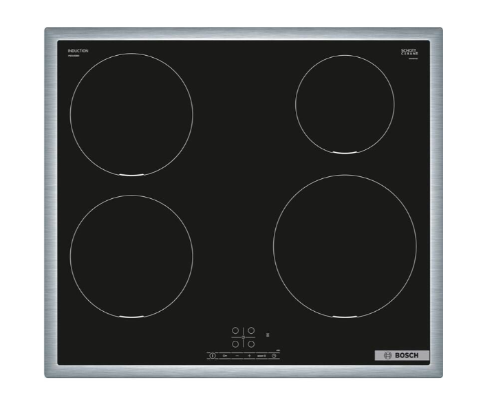 indukční varná deska • šířka 58,3 cm • 4 varné zóny • připojení 220–240 V • s nerezovým rámečkem • materiál: sklokeramika • příkon 7 400 W • senzorové ovládání TouchSelect • PowerBoost: rychlejší ohřev • Timer s funkcí vypnutí • ReStart: po nečekaném vypnutí si deska uloží poslední nastavení • 17 stupňů výkonu • dětská pojistka • V × Š × H: 5,5 × 58,3 × 51,3 cm