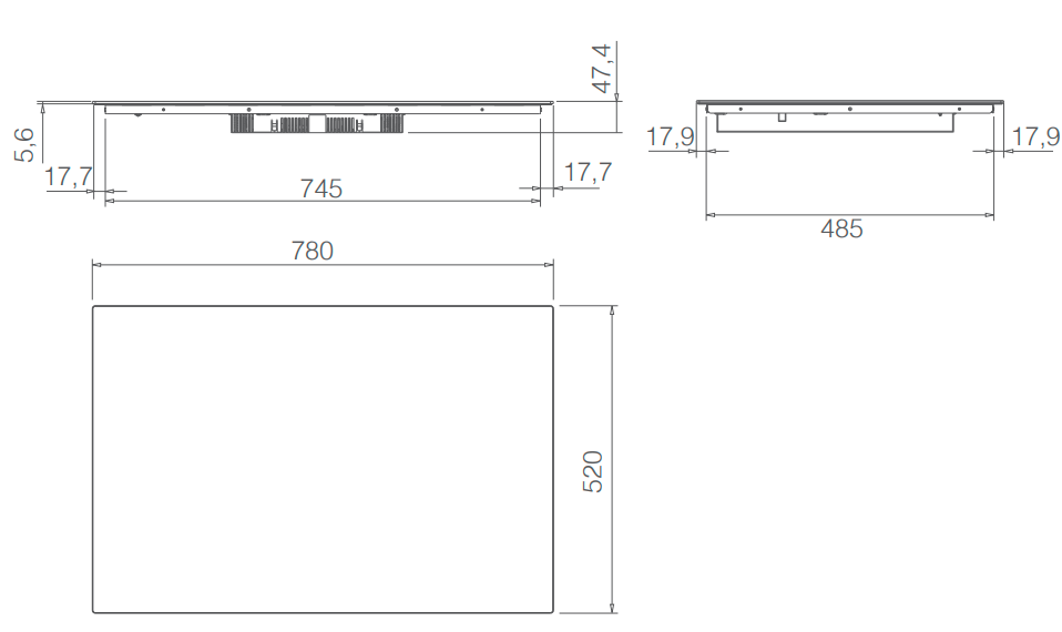 Varné zóny: 2 (2,1 - 3kW) - 210x190mm | 1 (3 - 3,6kW) - Ø 300 mm
