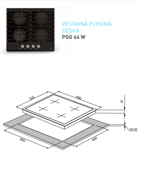 Plynová varná deska nabízí k dispozici čtyři hořáky s různými výkony. Ovládání je zajištěno pomocí otočných ovladačů. Jsou umístěny v čele hořáků, tím je usnadněna manipulace při přípravě pokrmů. Varná deska je rozdělena dvěma litinovými podpěrami.