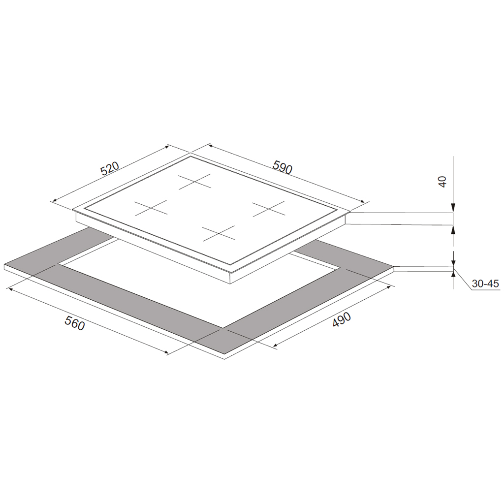 Rozměry pro vestavbu (VxŠxH): 51x560x490 mm