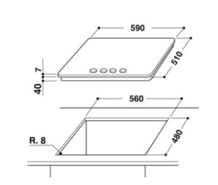 Rozměry otvoru pro zabudování (vxšxh) 38x560x480 mm