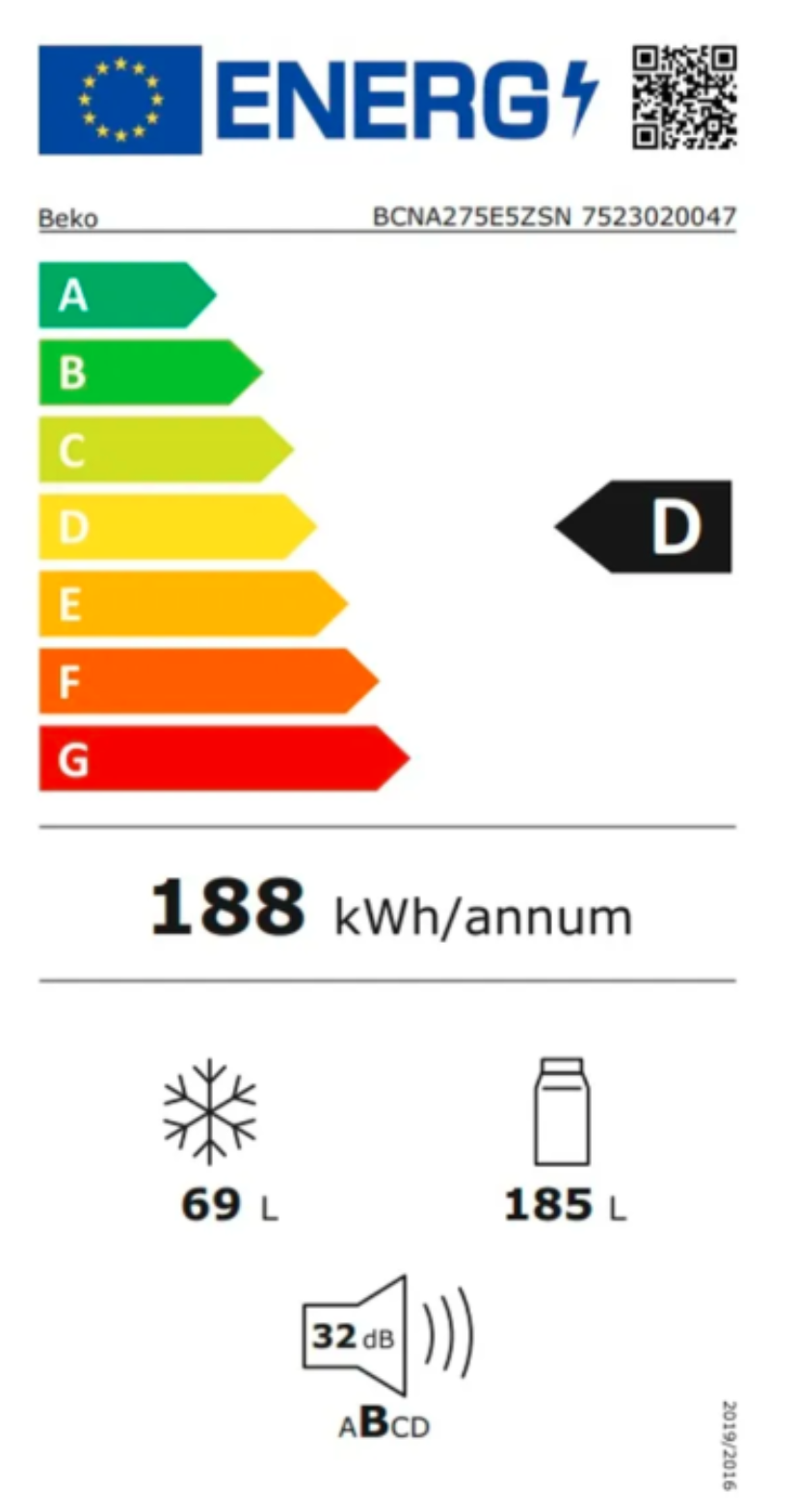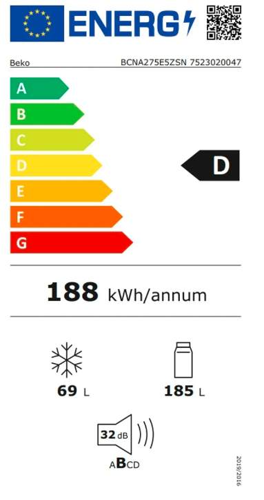 Minimální okolní teplota požadovaná pro provoz 10 °C Roční spotřeba energie 188 kWh/rok
