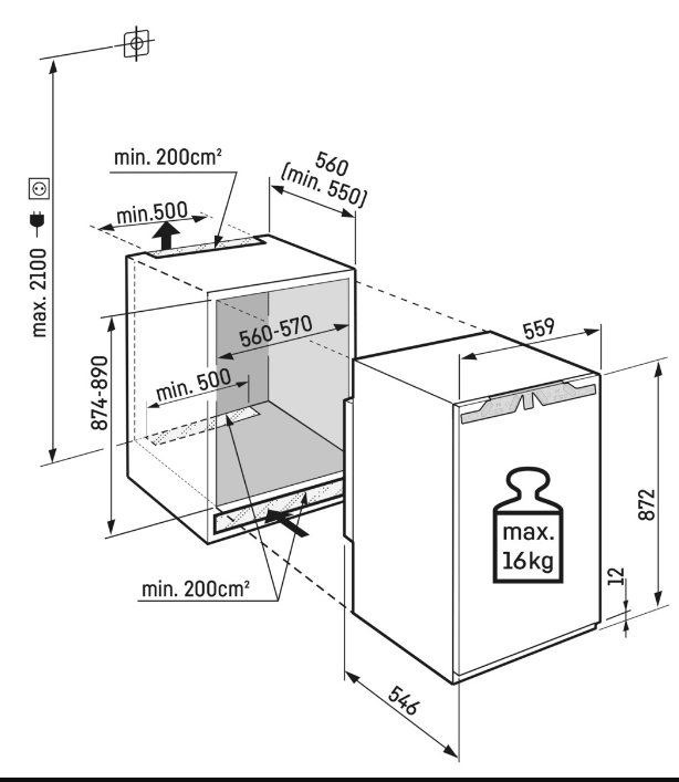 Rozměry výklenku výška/šířka/hloubka 87,4 - 89 / 56 - 57 / 55,0 cm
