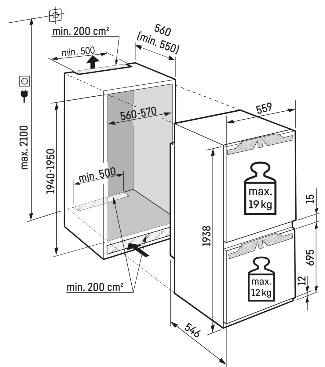 Skupina výrobku Integrovatelná kombinovaná chladnička s mrazničkou s EasyFresh a NoFrost