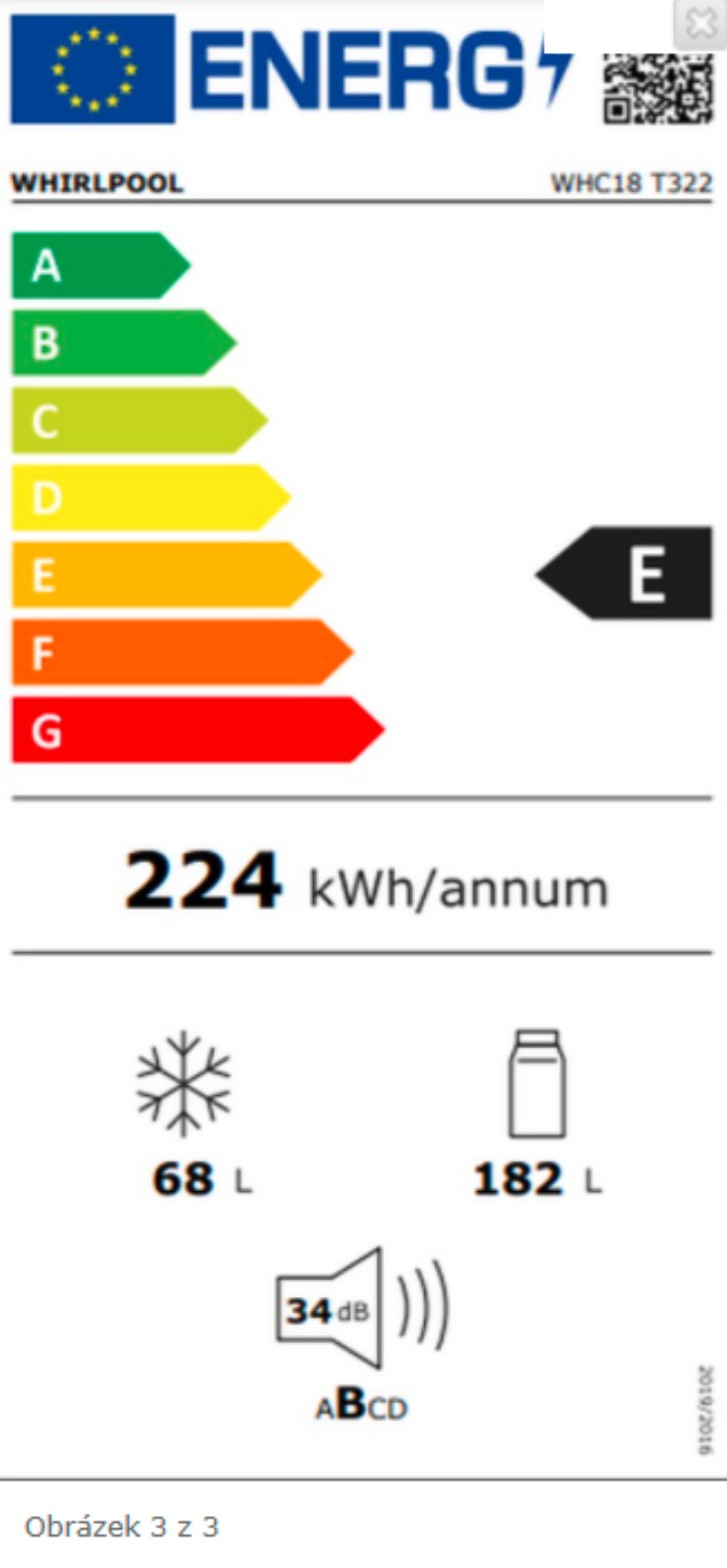 Spotřeba energie: 224 kWh/rok