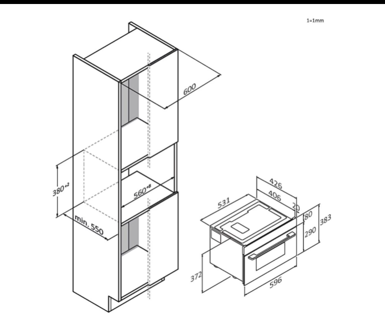 Hloubka pro vestavbu cm 55