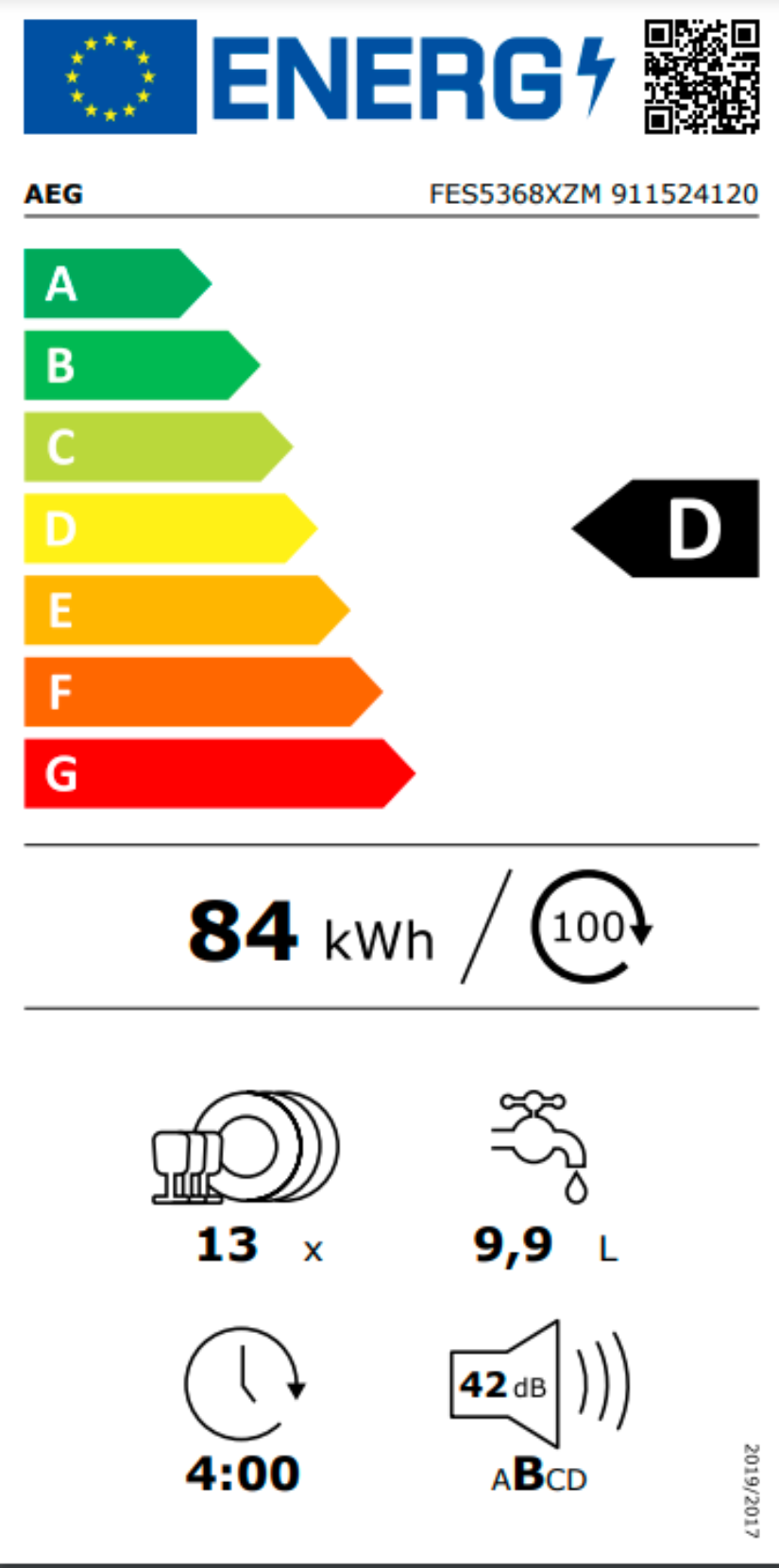 Kapacita mytí: 13: Podle normy IEC pro sadu nádobí. Jednou sadou nádobí je podle této normy: talíř, hluboký talíř, dezertní talíř, sklenice, čajový šálek s podšálkem, nůž, vidlička, polévková lžíce, dezertní lžíce a lžička.