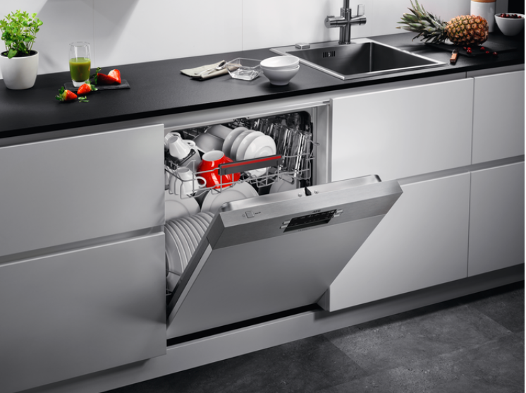 Dolní košík má 4 foldable plate racks, Plastic coloured handle