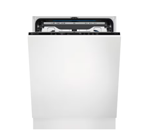 Horní košík má 2 skládací držáky, 2 skládací drátěné držáky pro skleničky, 2 měkké špičky, 6 měkkých špiček pro vinné sklenky, skládací poličky na šálky, nerezové držadlo Electrolux, Postranní držáky košíku