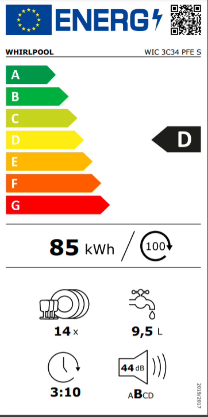 Plně integrovaná myčka nádobí WIC 3C34 PFE S v energetické třídě D ve standardní šířce 60 cm.