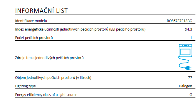 Spotřeba energie (nucená konvekce vzduchu) 0,71 kWh