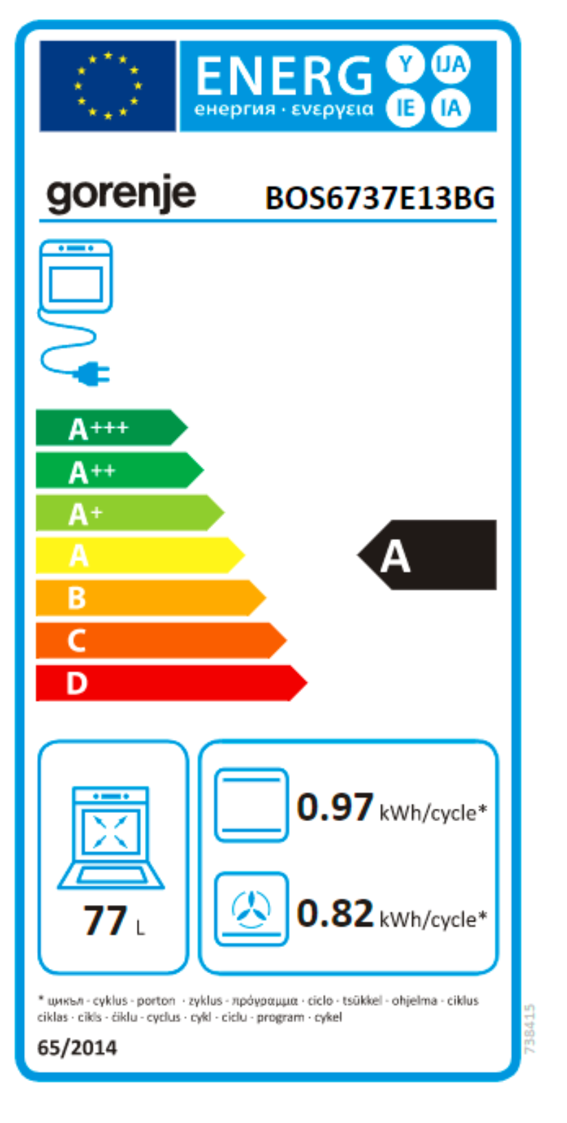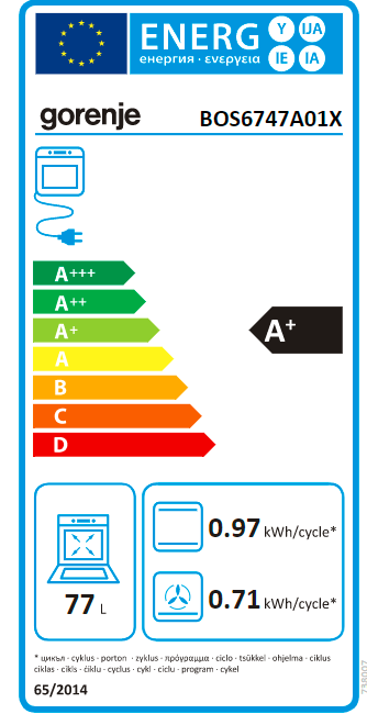 Spotřeba elektrické energie na jeden cyklus v režimu ventilátorové nucené konvekce (2010/30 / ES) 0,71 kWh/cycle