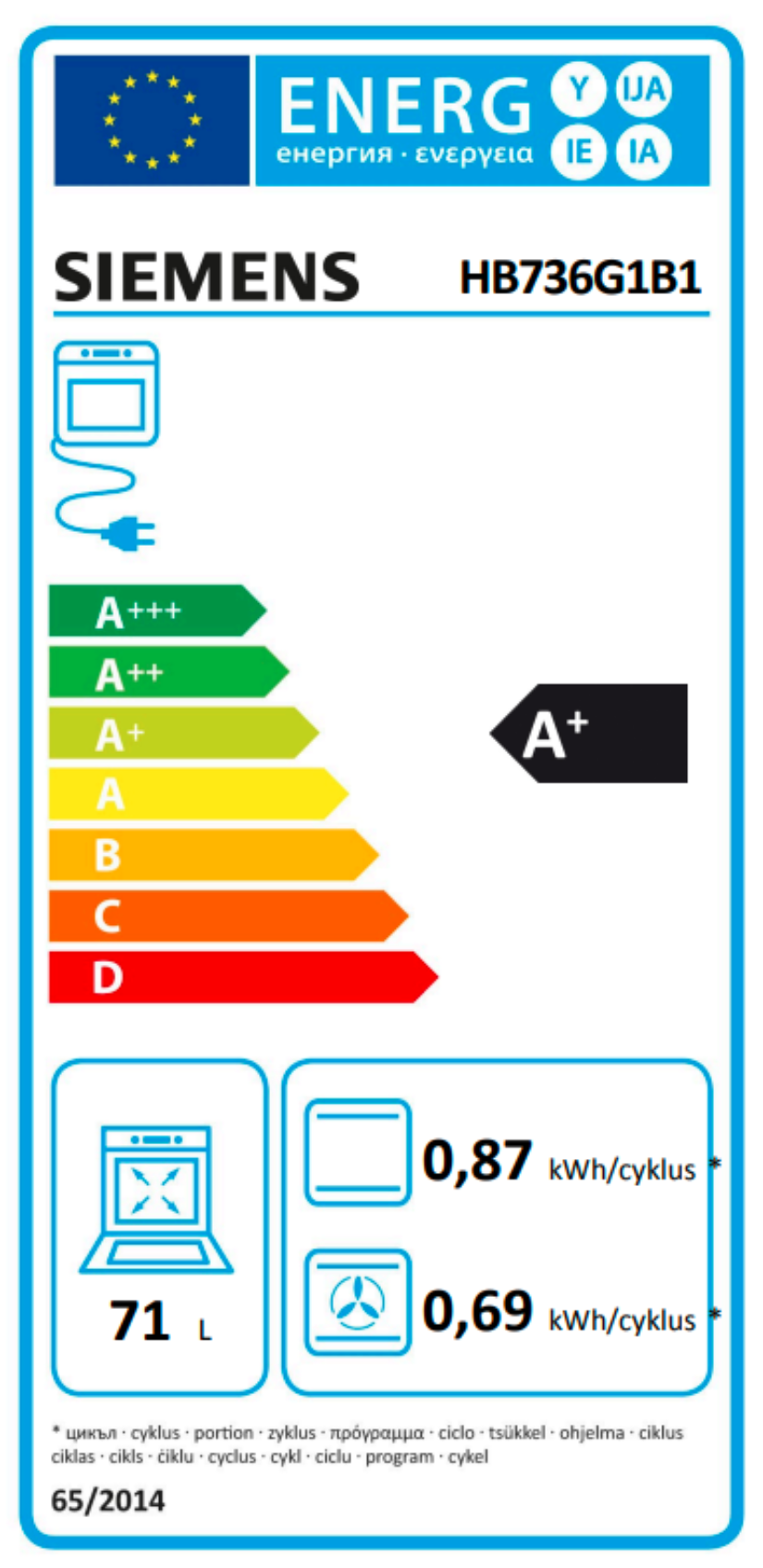 | Objem trouby L | 71 |