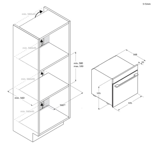 Výška pro vestavbu cm 59